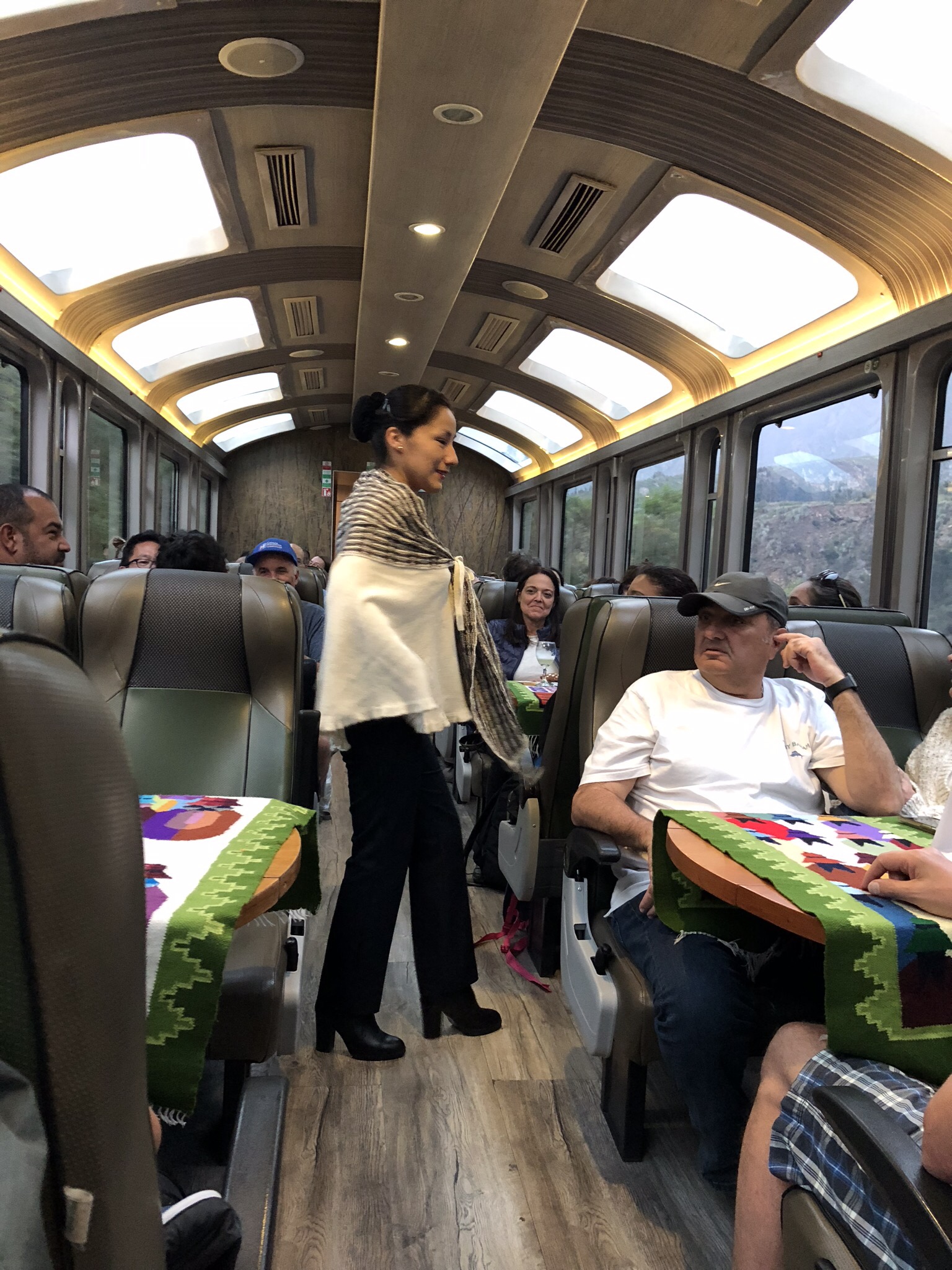 We also had a fashion show on board the train. The train staff modeled baby alpaca clothing. It was aimed at getting us to buy something but everyone on the train was in a good mood and it turned into fun entertainment after a long day.