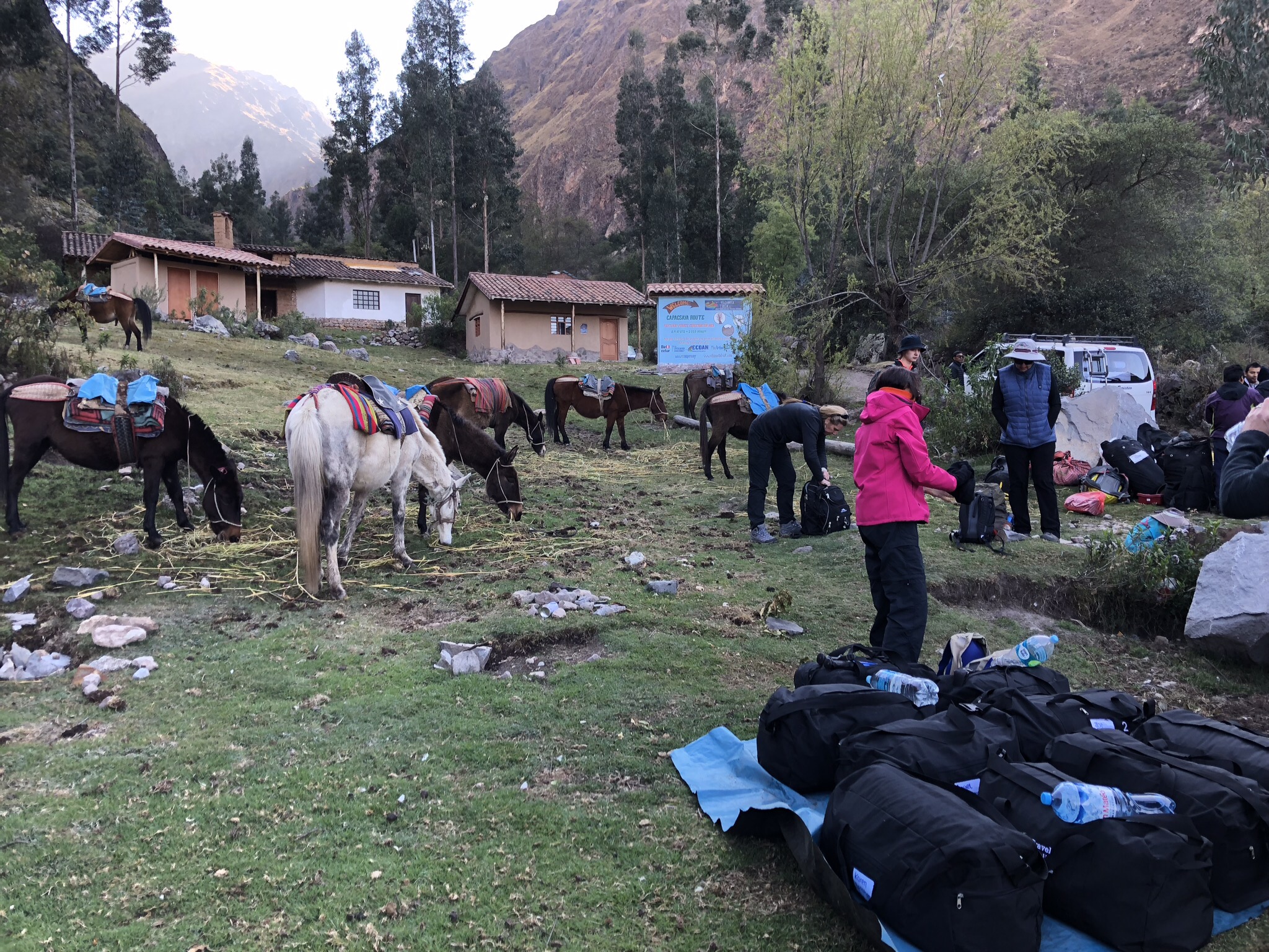 We were briefed on Monday night by Angel, our trek leader who is a shaman-in-training. He explained we would have two other shamans with us on the journey and gave us all the practical details: what to pack in our duffel bags that would be carried by the horses, what to pack in our daypacks that each of us would carry, what to leave behind in our suitcases/backpacks. Our left behind things would be delivered to us back in Cusco after the trek. We were only allowed 7kgs (15lbs) in our duffel bags, including our sleeping bags and our camping mattress.
