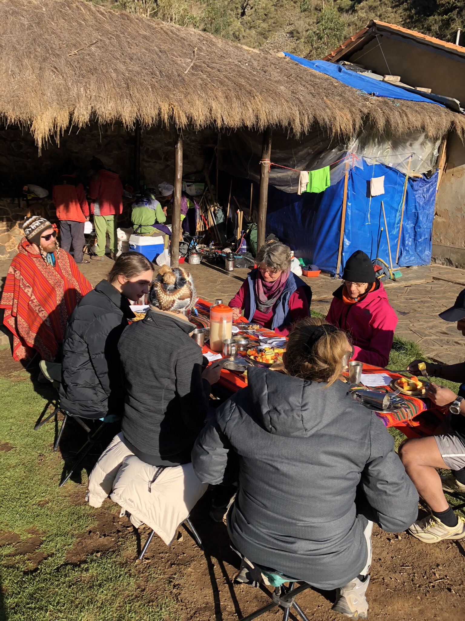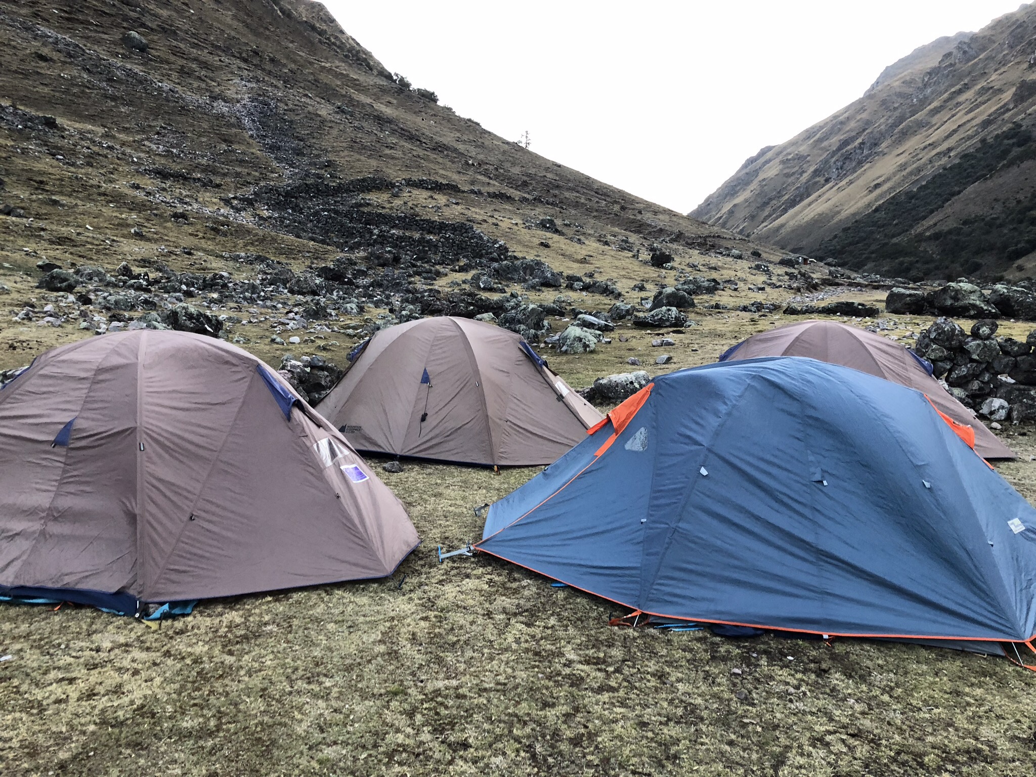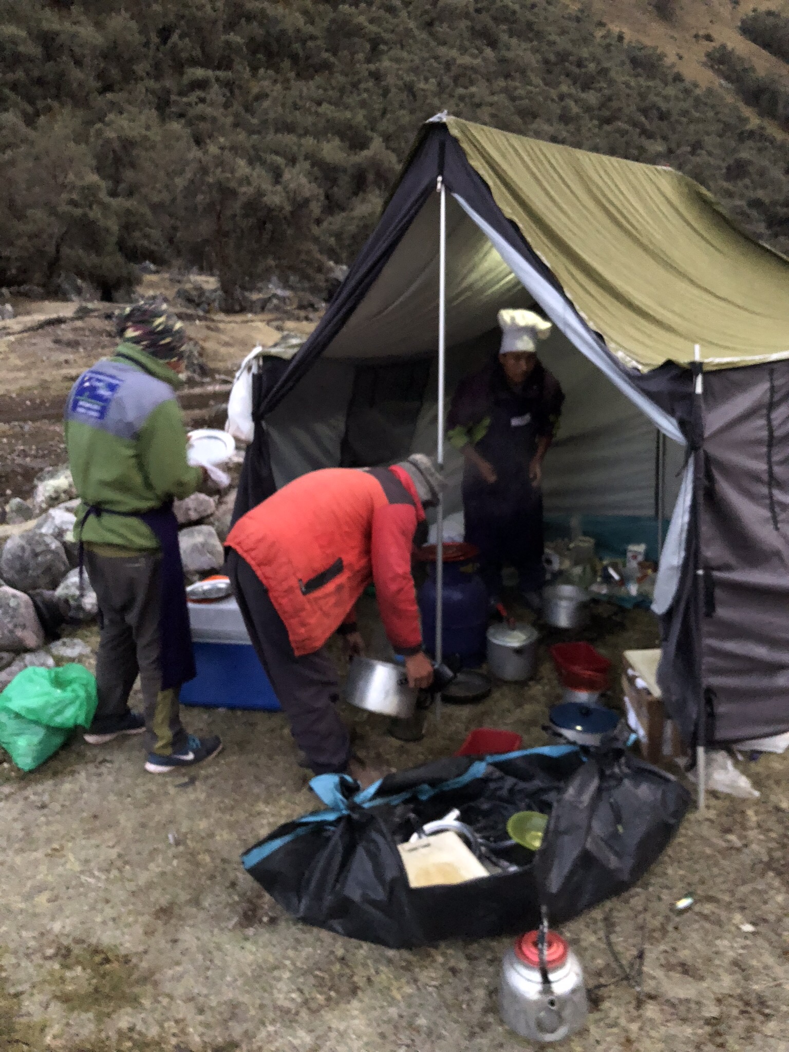 I wasn’t the only one struggling. Others were too and they weren’t battling gastro. So while we ate, the porters put up our tents and after lunch we were encouraged to have a rest. Angel and Manuel decided this would be our camping spot for the night and since the wind was blowing forcefully and it was so cold, we all had naps.
