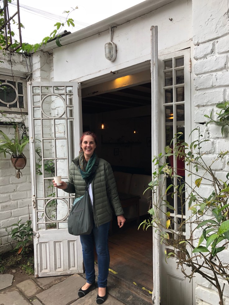 After coffee, we wandered a bit around Barranco and ended up at a cafe known for milkshakes. We all had lucuma milkshakes which I loved and thought tasted very nutty. Others in the group weren’t so keen. I liked the feel of this cafe. One of the windows had been turned into a door, but Zoë was just too big for it.
