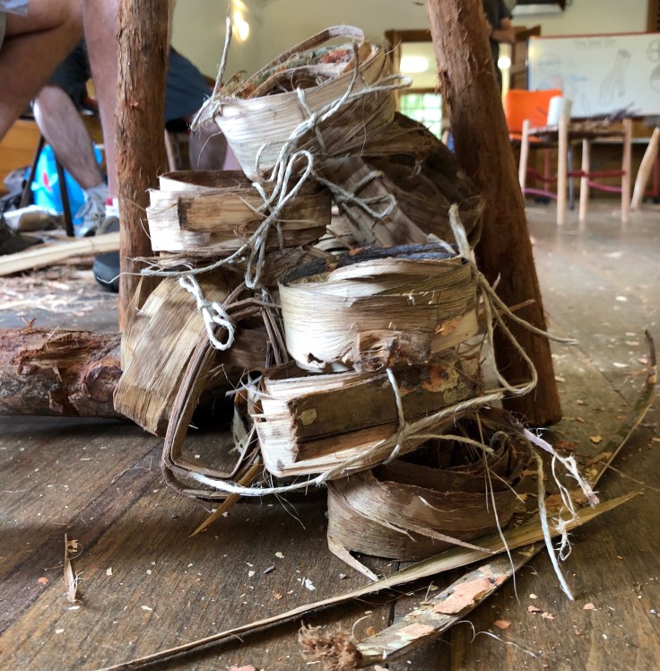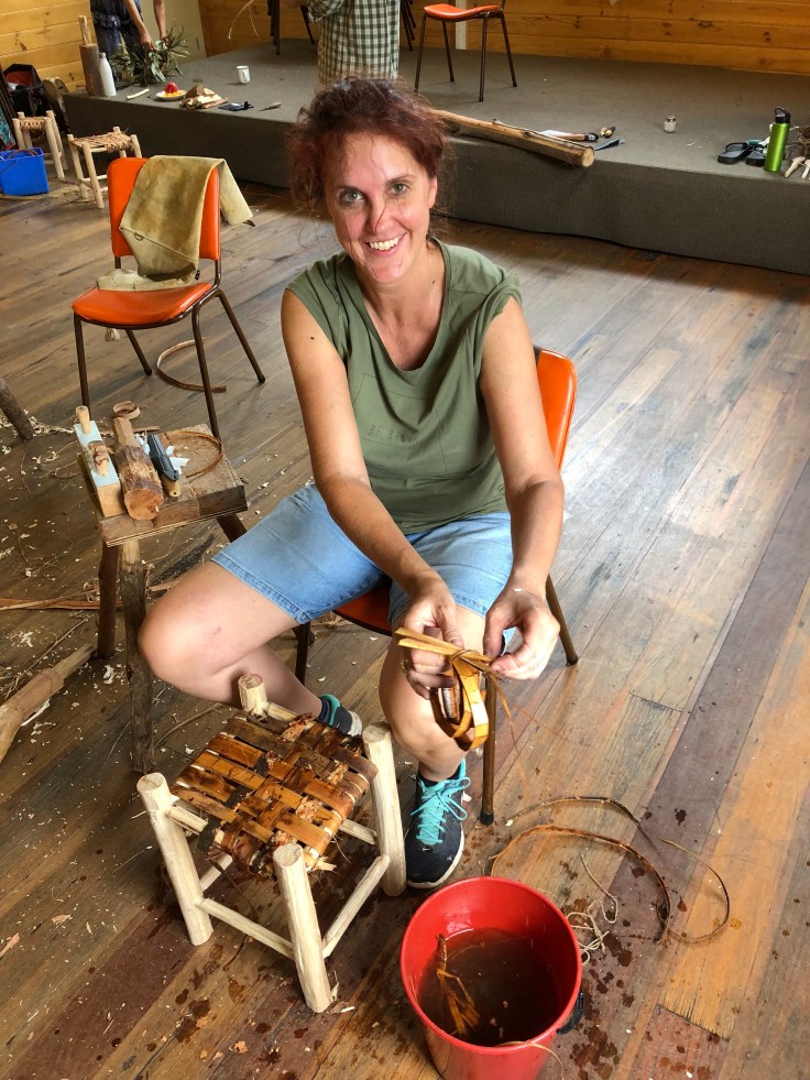 For the next seven days I learned how to use an axe and knives to carve spoons and other utensils, as well as stool legs, puppets and brooms. I also peeled bark and wove baskets and a seat for my stool, which turned out pretty great (if I say so, myself).