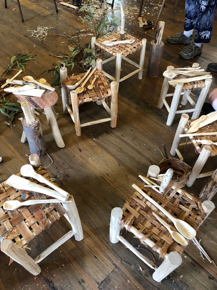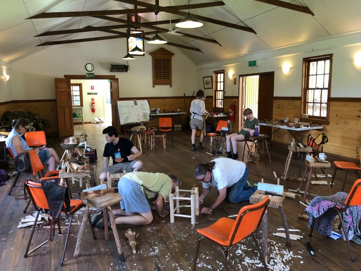 The 10 participants plus Jeff, The Spoonsmith, gathered in a restored village hall in a tiny community 10kms from Eden on Monday morning. We went around the circle introducing ourselves and explaining what drew us to the course. “The free camping,’ was my answer to this question which made the others laugh. But in a way, it was true. I was camping in my tent in a beautiful place next to a small village hall where I was meeting lovely new people and learning some new skills. If I took something away with me at the end of the week, that was a bonus. I was there for soul therapy.