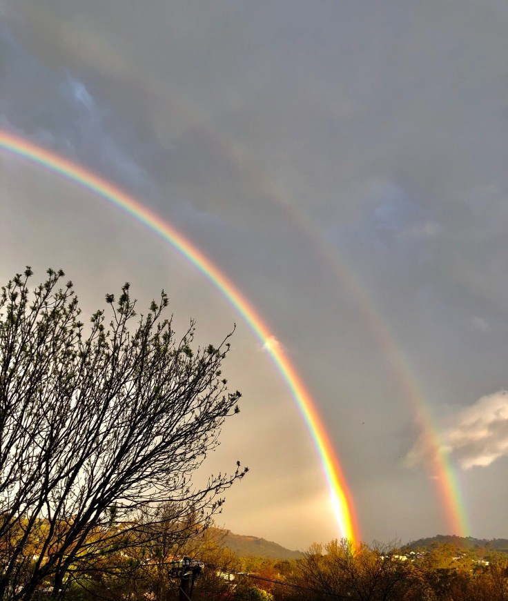 I am in the empty time. I have been in this empty time now for some time and have come to embrace it. I am learning patiently to love and accept all of my wounded and wild parts. I have wept. And opened to allowing. I have taken refuge in my senses: cooking, eating, planting my garden, building a chicken coop, knitting, painting, reading. I watch the rain from my sofa, glad to see it and yet, know it will clear and bring sunshine (and sometimes rainbows like the one above that I photographed from my back deck). I have sat in stillness and silence like a stone, until that is my new preferred position — not talking to anyone, not engaging with the outside world. No email. No social media. No texting. No blogging. Just listening to my heart and soul.