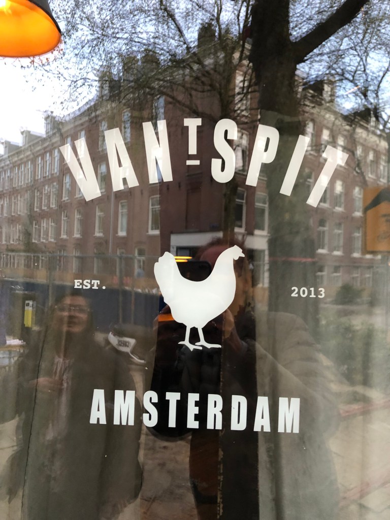 After a quick drink and catch up about our mutual travels we moved on to Van‘t Spit, a restaurant dedicated to perfectly roasted chicken. This restaurant is off the beaten path and we were the only tourists there. It was packed with local people, so we figured it would be good. The smell that hits you when you open the door makes your mouth water. It is a mix of wood-smoke, roast chicken and just plain deliciousness. Patrons order either a ½ chicken or whole spit roasted chicken and then individual side dishes: chips, sweet potato mash, applesauce, coleslaw or green salad. For something so simple, we all agreed it was one of our favourite meals. In fact, my daughter proclaimed it was the best chicken she’s ever had in her life and she will spend the rest of her life dreaming about it. It was delightful to see old friends and have dinner with them, just like we do in Canberra, except it was in Amsterdam.