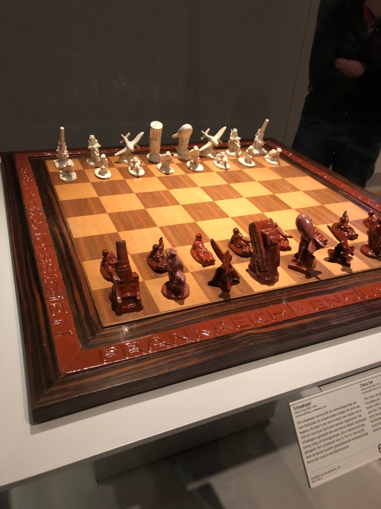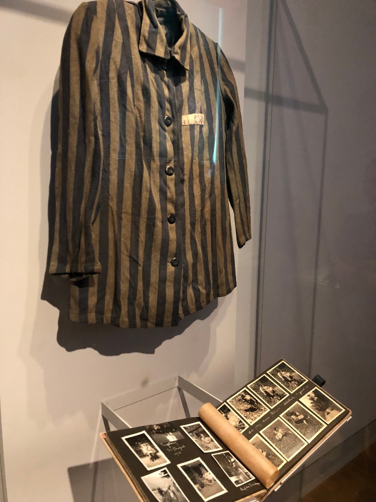 As 4 May is a day of remembrance for the Dutch people, we ended the tour on third floor where artifacts from the 20th century are housed. Aart showed us a chess set that was created by a German soldier who was stationed in the Netherlands. Each piece is shaped like weapons and the text in the border refers to countries occupied by Germany in 1939 and 1940. We also saw the Wachenheimer Family Photo Album and Isabel Wachenheimer’s concentration camp coat that she wore at Lenzing-Pettighofen concentration camp in Austria. She was transferred there from Auschwitz in October 1944. Isabel survived the war but her family were killed at Auschwitz.
