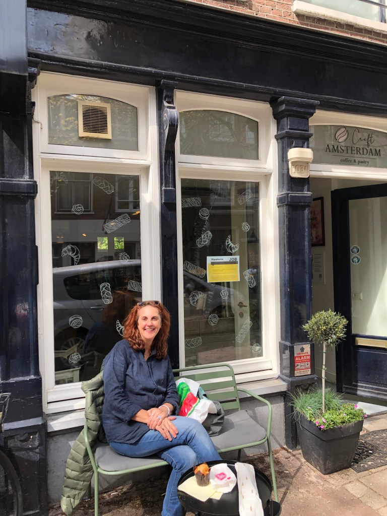 We finally got to Craft Amsterdam on Thursday afternoon. This is a dedicated gluten-free bakery in the de Pijp area of Amsterdam. They had been closed on Monday and Tuesday so it was our first and only chance to try their baked goods. As soon as we walked in, we started talking to the owners, a husband and wife who had started the bakery because the husband was diagnosed with coeliac disease. He took a bread roll from the display, broke it in half and gave us each half to try. He asked if we’d ever had better gluten free bread. We seriously hadn’t. It tasted like it was full of gluten and we were both shocked by how delicious it was. Even my daughter, who has had bread with gluten more recently than me, said it was better than gluten full bread. We walked out with Gevulde Koeken (almond paste cookies), a cinnamon muffin, and baguette and chocolate croissants for our train journey to Paris the next day. We were both so happy to have been able to find this little place and give them our business. Now if I could just get them to open a branch in Canberra!