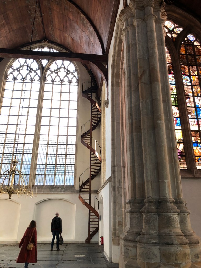 On our last morning we had one more adventure before departing for Paris. We dropped our bags off at Centraal Station at 7am and then wandered the inner-city canals before attending a string quartet concert at the Oude Kerk, a 13th century church and the oldest building in Amsterdam, set in the middle of the red light district. The church was built on a graveyard and its’ floor consists completely of gravestones.