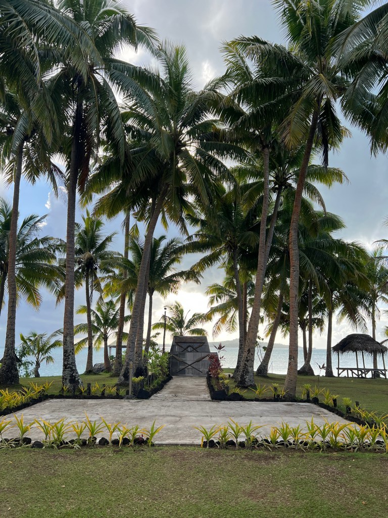 Le Vasa Resort is also home to the Malietoa Memorial which marks the spot of the last battle between Samoa and Tonga, during which the Samoans defeated the Tongans and drove them from their land. According to the information we were given at the resort, the period of Tongan oppression and subsequent war lasted 300 years from 950 AD to 1250 AD. That’s a big, long lasting war!